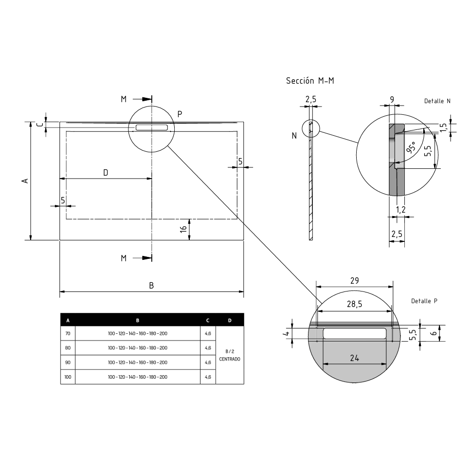 - Possibilité de commander une douche sur mesure, tolérance de +/- 5mm.