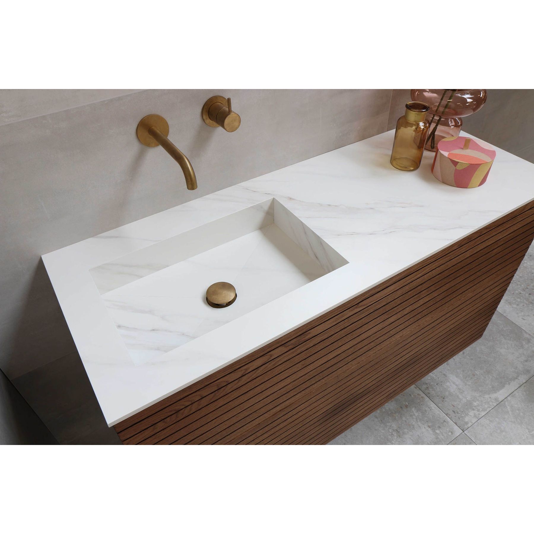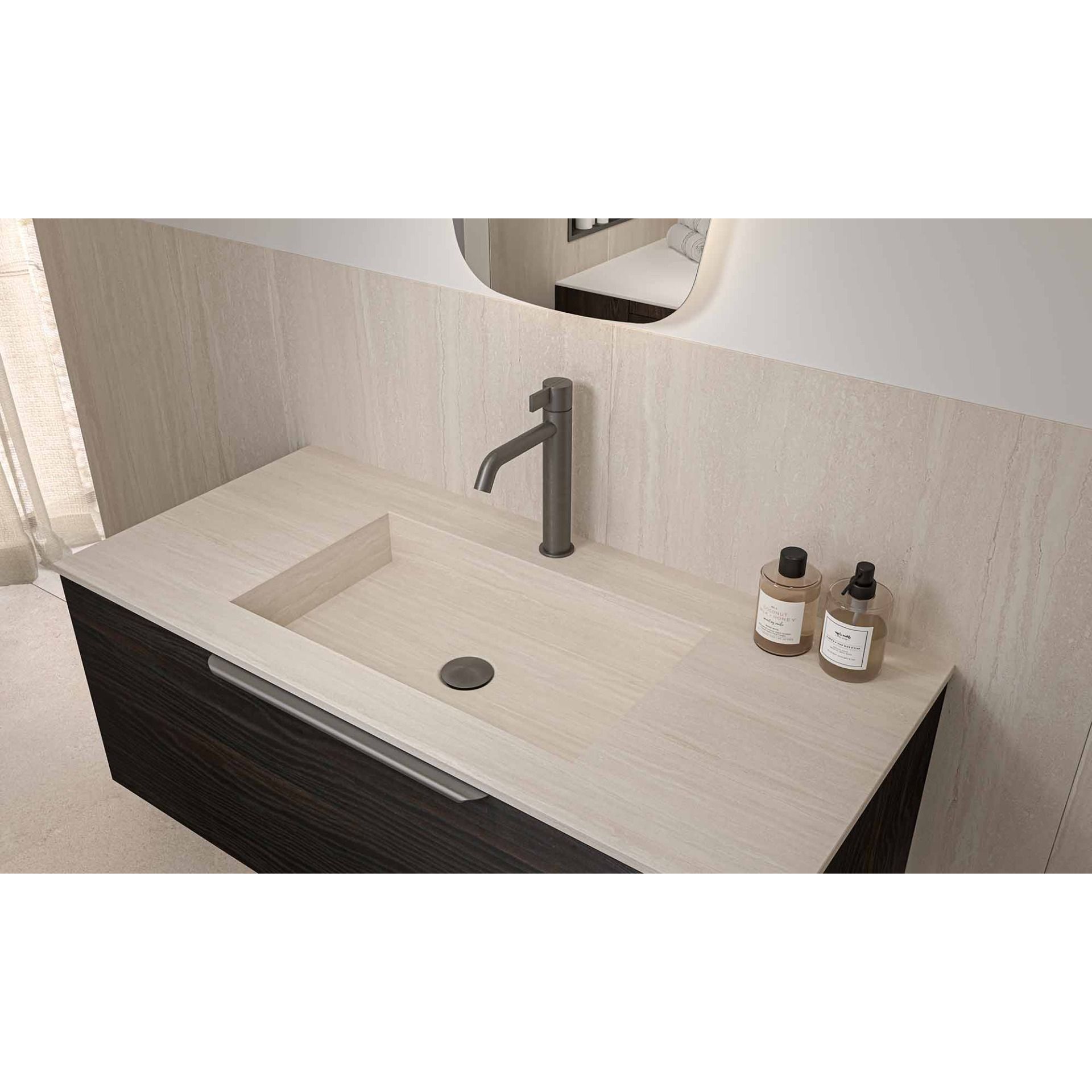 De Invia wastafel is gemaakt van 12 mm dik keramisch tegelmateriaal met een natuurlijke uitstraling. Het materiaal is onderhoudsarm, kras- en hittebestendig, niet poreus en eenvoudig schoon te maken. De wastafel heeft een centrale, aflopende binnenbak en is verkrijgbaar in twee maten. Dankzij het flexibele ontwerp is de wasbak links, rechts of in het midden te plaatsen. Invia is leverbaar in diverse matte en glanzende kleuren. Met de flexibele plaatsingsopties en diverse kleurafwerkingen is de Invia wastafel perfect aan te passen aan elke badkamerindeling.